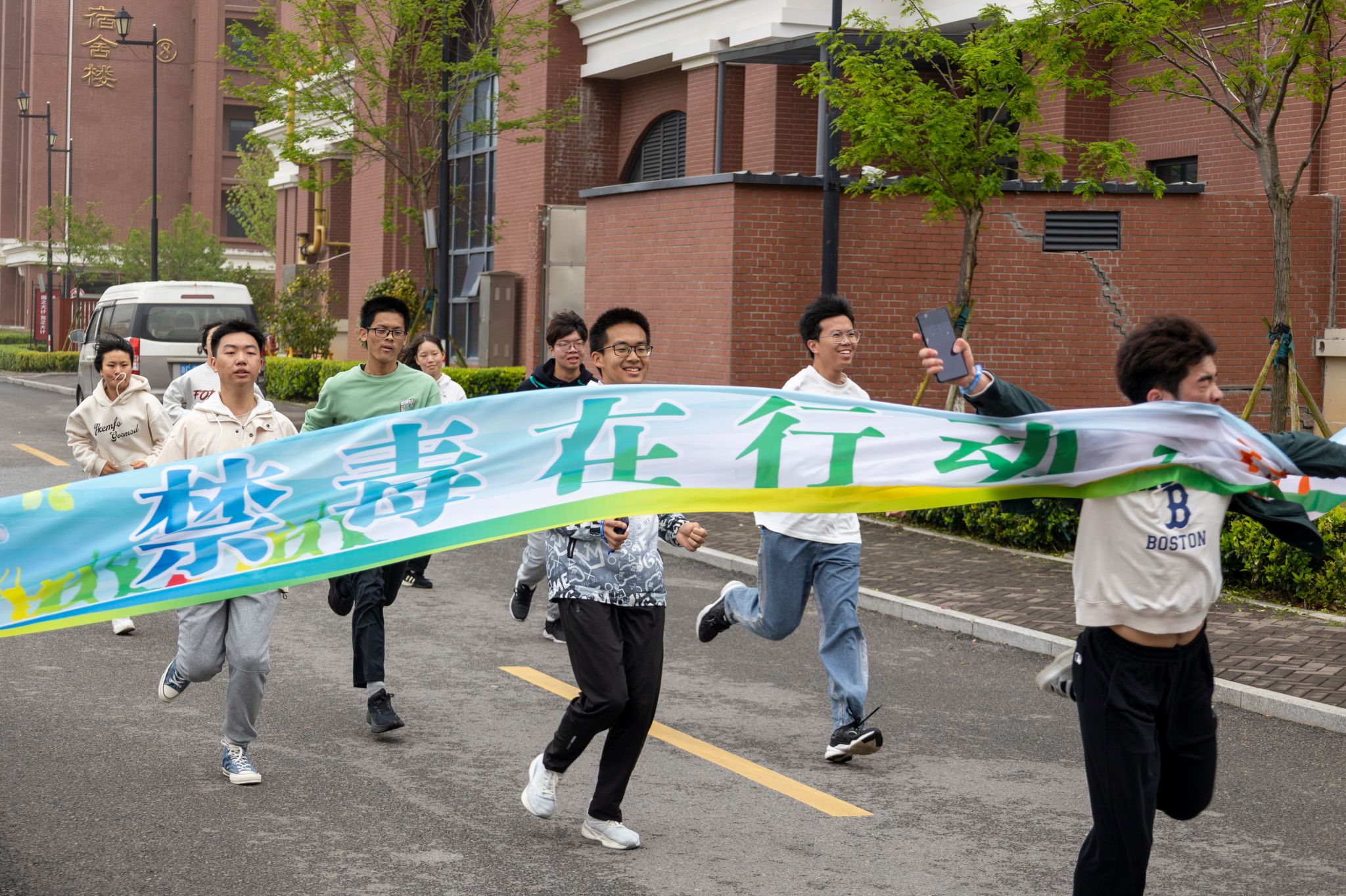 4月13日上午,学院举办一场别开生面的户外健康彩虹跑活动。活动以“禁毒在行动,同行七彩路”为主题,巧妙将“健康人生,绿色无毒”理念融入体育运动中,将元素体现在赛事手环、活动气球、运动腰包等中,激励广大师生以奔跑这一阳光健康的方式,响应国家倡导的无毒健康生活。绿意盎然的校园中,50名仁济学子青春的身影穿梭其间,挥洒着汗水,传递着我院学子对禁毒事业的坚定支持以及对健康生活方式的热烈向往。