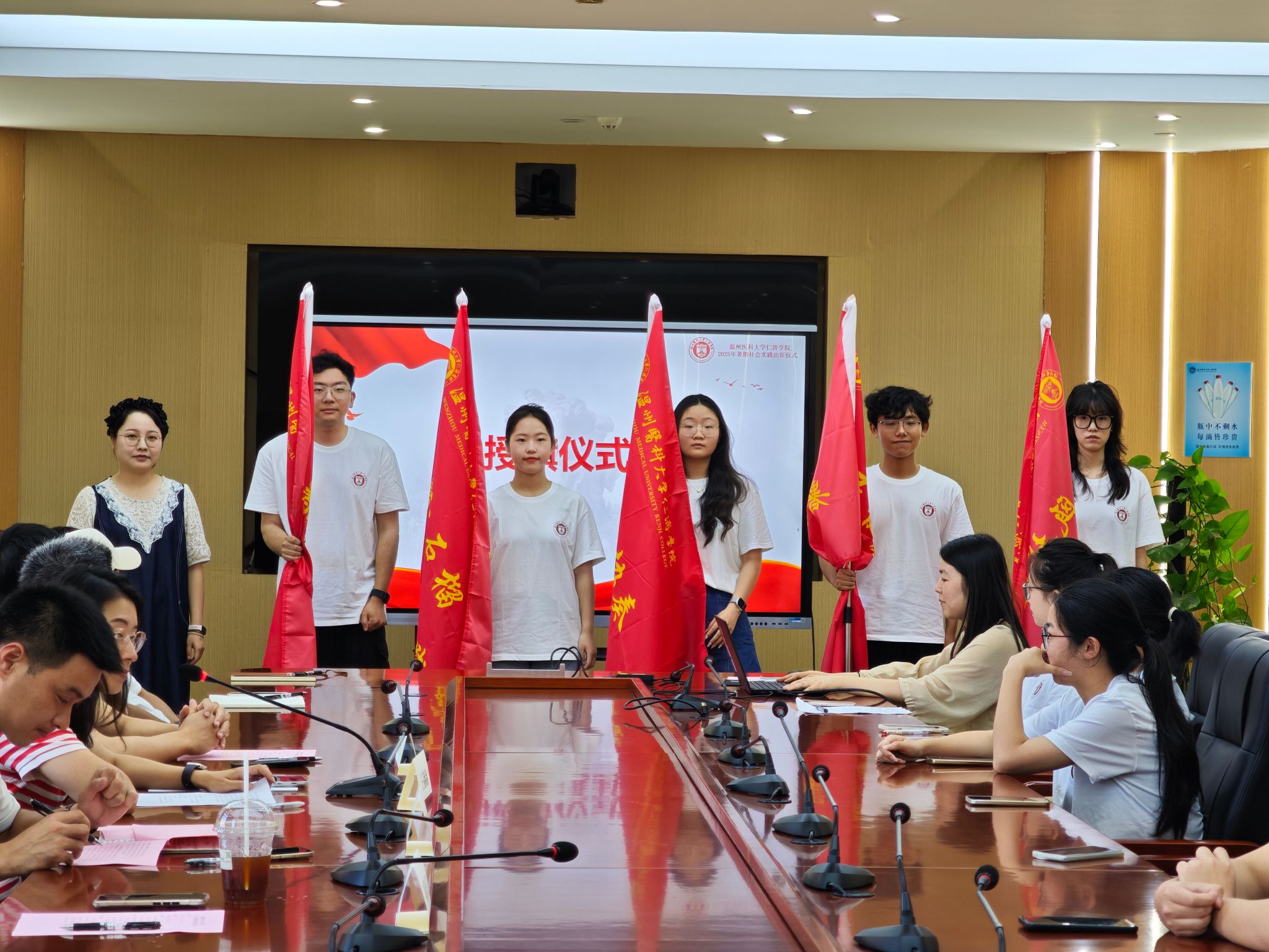 “我们将用脚步丈量土地,用专业服务群众,用实际行动诠释仁济精神!”实践队代表邵梦瑶同学的铮铮誓言,道出了全体实践队员的心声。各团队接过鲜红的队旗,标志着2025年暑期社会实践活动正式启动。