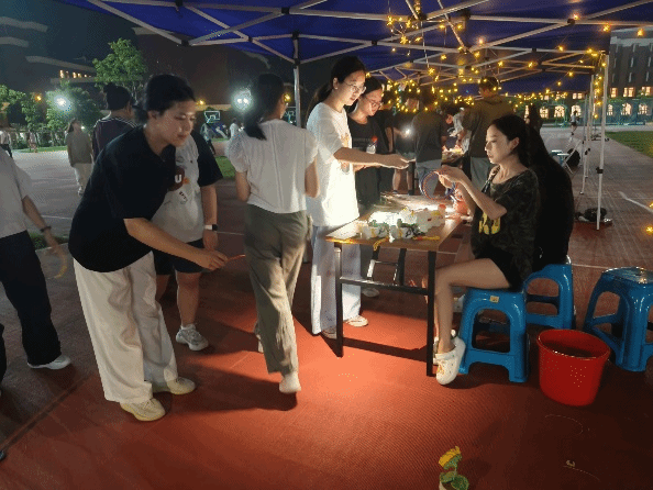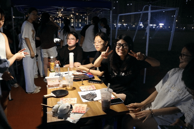 伴随着健身跑的激昂音乐声,操场另一侧的趣味互动区同样热闹非凡。“健康知识快问快答”“趣味投壶”“乒乓飞扬”等游戏项目妙趣横生,现场欢笑声、加油声此起彼伏。同学们在奔跑之余,通过轻松有趣的互动游戏增进交流、放松身心,深刻感受“FUN肆”快乐的丰富内涵。