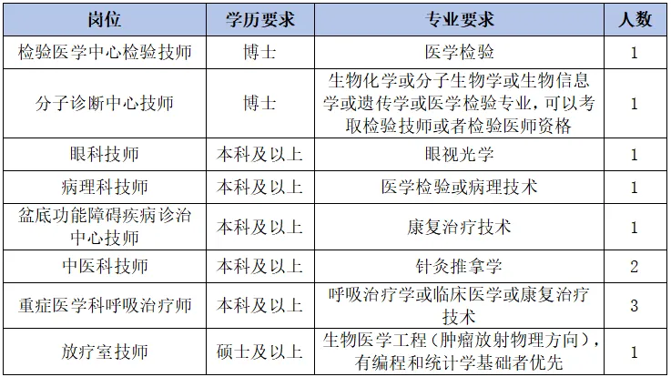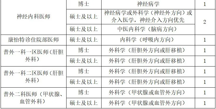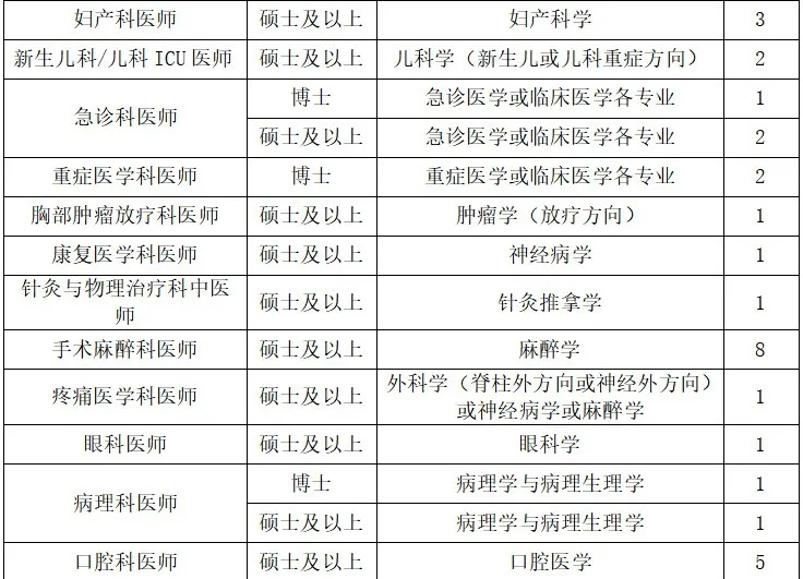 1、具备全日制本科及以上学历和学位(初始学历须为国家统招本科起点),各岗位专业要求详见“招聘岗位表”。培训期两年。