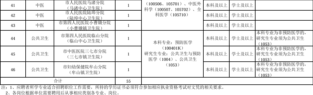 根据有关规定和卫生健康事业发展需要,经研究,决定面向普通高校本科及以上学历、学士及以上学位的毕业生公开招聘卫技事业人员55名。现将有关事项公告如下: